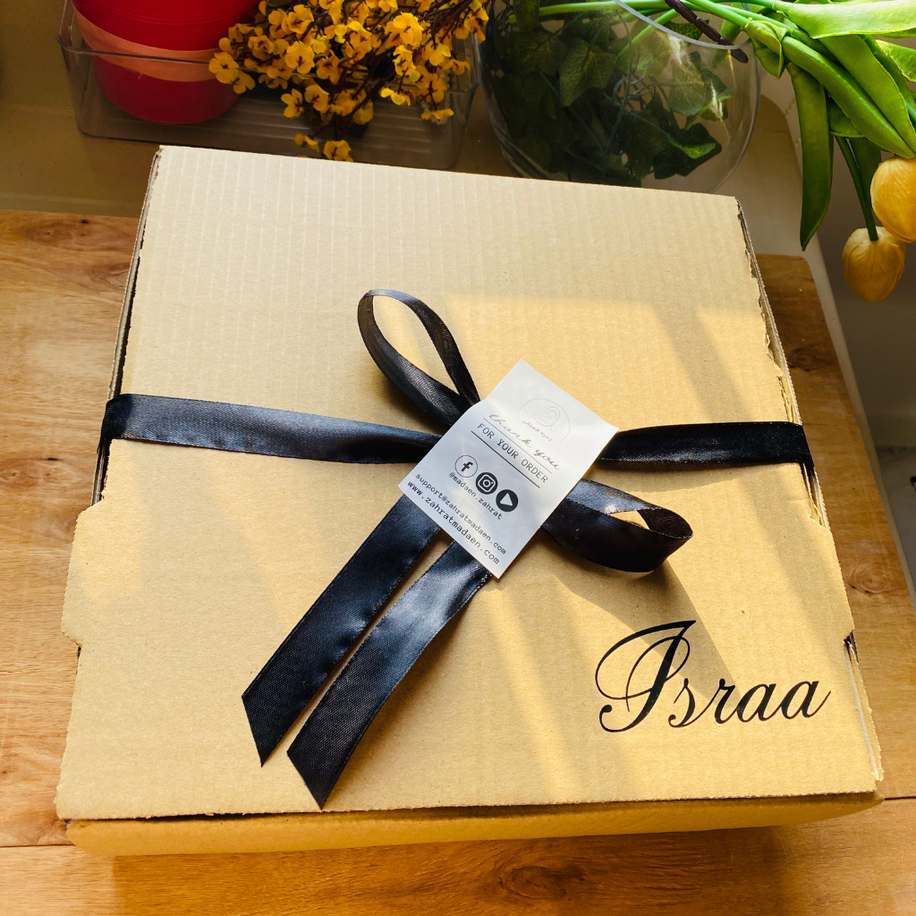 بوكس هدية أنيق مع ربط شريطة + طباعة الاسم على الغطاء