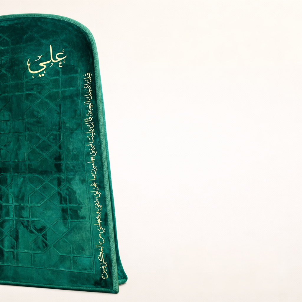هدية روحانية متكاملة بتصميم فاخر وشخصي. يحتوي على سجادة صلاة محراب باللون الزيتي مطبوع عليها اسم "علي"  + "قيل ادخل الجنة قال يليت قومي يعلمون بما غفر لي ربي وجعلني من المكرمين "+ ريشة ذهبية باسم "علي" ، مع طباعة الاسم عالبوكس . مثالي للمناسبات الدينية ولتقديم هدية تبقى بذاكرة من تحب.